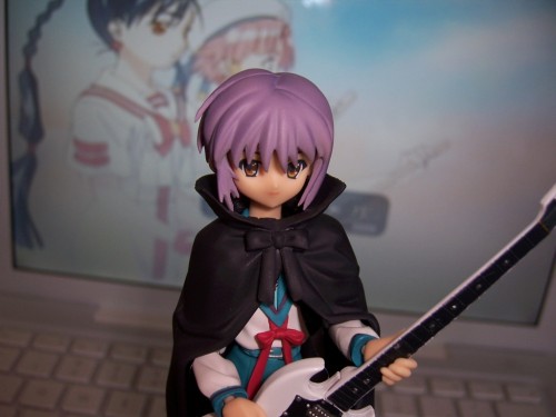 Bottom up view shows how cute and lovable Nagato is with her little head stickingout of the massive hat above her. If you haven't witnessed Nagato's guitar playing prowess, I must suggest you watch the Melancholy of Suzumiya Haruhi. Watch all of it or it will not have any impact on you. And you will see what's so great about her. If you already watched it and want to re-live the excitement and pure passion of the moment when Haruhi sang God Knows, Here's the Youtube.