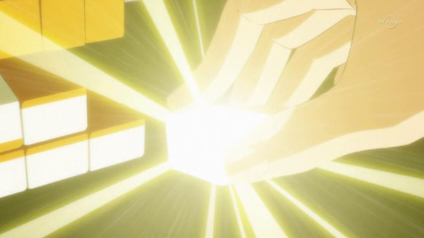 Man, when I saw this scene, there was this adrenaline rush that came over me and put me in a trance, trying to tell me that if I was about to score massive in a game of mahjong, the tile would glow in my hand and light up the entire room, warning everyone to stop playing with me before they lose all their money. When I came to, I realized I was watching anime, and not actually playing a real game with real tiles. Though, it would still be nice to have glowing tiles someday. I wonder if they sell such things.