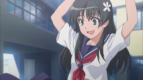 At least she isn't as generic as Mio, but the side tails falling to the front of the shoulders seems to be growing on me. I blame Mio for that. She's a Level 0, but she's earned my respect this episode by being the heroine rescuing the shota in distress.