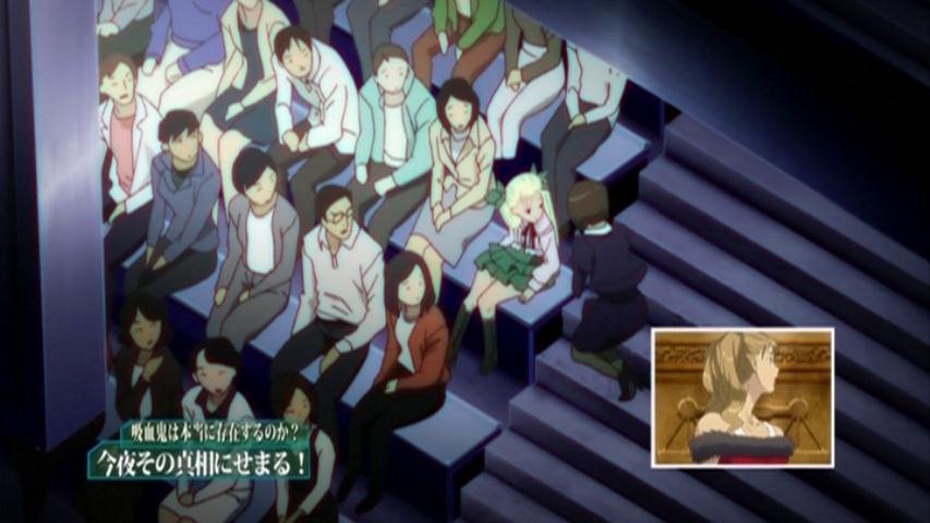 And that night vision footage of the loli standing majestically, ready to rule over all vampires in the show and otakus in real life is simply a sight to behold. Of course, twintails are the new crown.